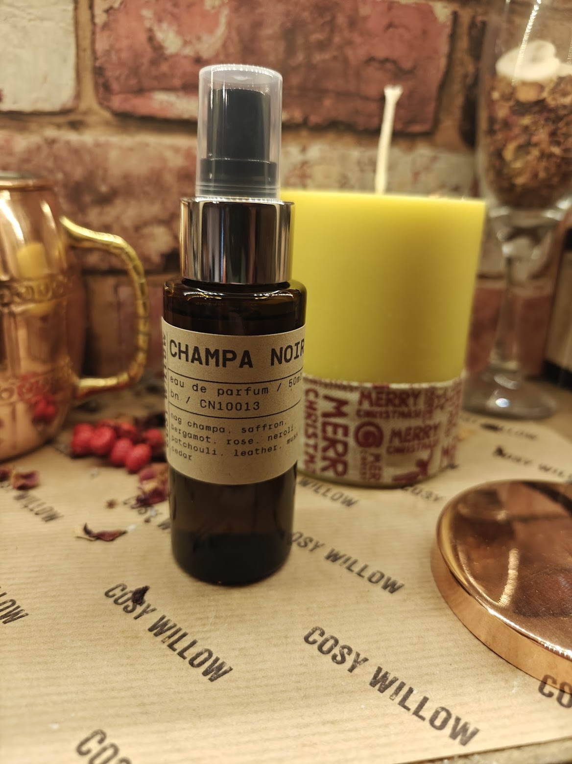 Warm, soft, and quietly grounding, Champa Noir brings the comforting haze of incense with a whisper of earthy sweetness. Rose adds a gentle floral lift, while hints of leather give the blend a smooth, worn-in warmth — like sunlight on old wood and the familiar scent of well-loved books.